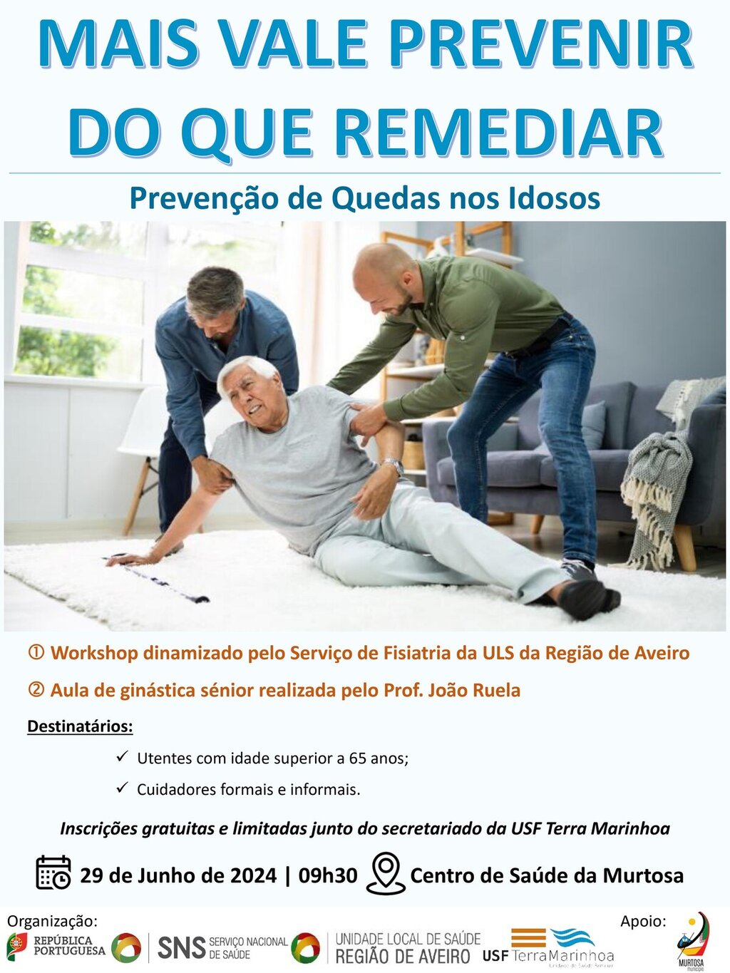 No âmbito da comemoração do Dia Mundial de Prevenção de Quedas, a USF Terra Marinhoa irá dinamizar uma Sessão de Educação para a Saúde com o objetivo de sensibilizar sobre a importância desta temática, tendo em conta as consequências físicas e psicológicas que podem ter na pessoa.