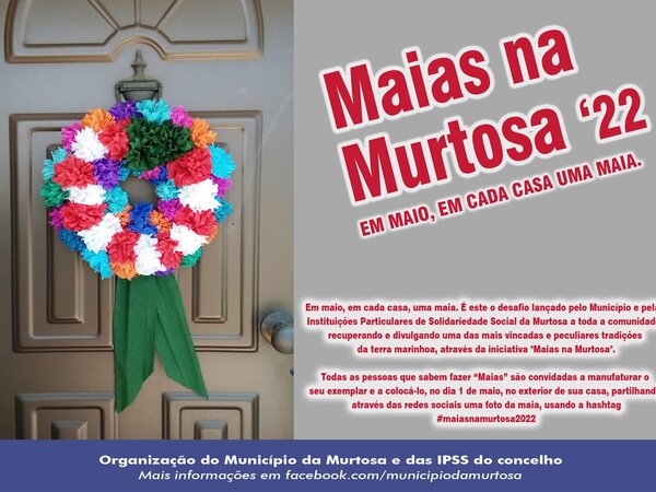Em maio, em cada casa, uma maia. É este o desafio lançado, mais uma vez, pelo Município da Murtosa a toda a comunidade, recuperando e divulgando uma das mais vincadas e peculiares tradições da terra marinhoa, através da iniciativa "Maias na Murtosa". -