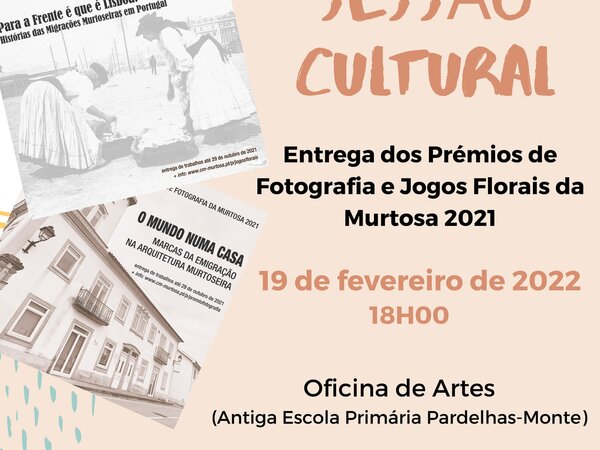 O auditório da Oficina de Artes, na Murtosa, recebe, no próximo dia 19 de fevereiro, pelas 18H00, a sessão cultural de entrega dos prémios dos concursos de jogos florais e de fotografia, promovidos, pelo município, em 2021, cujos temas foram “Para a frente é que Lisboa! – histórias das migrações ... -