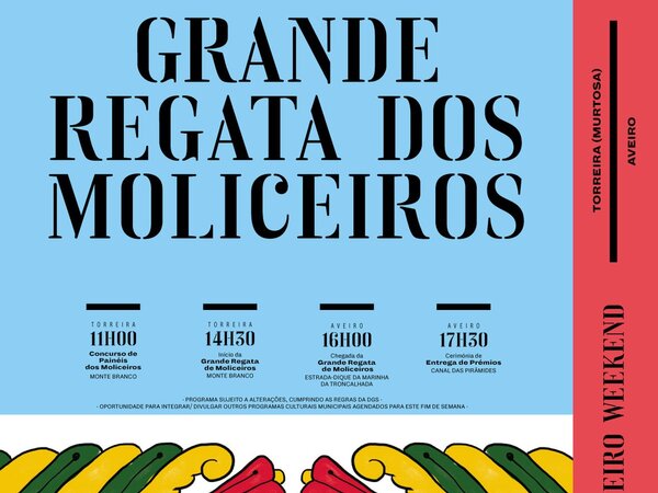 No próximo sábado, dia 3 de julho, terá lugar a Grande Regata de Barcos Moliceiros do Ria de Aveiro Weekend, organizada pela Região de Aveiro, que ligará a Torreira à cidade de Aveiro. -