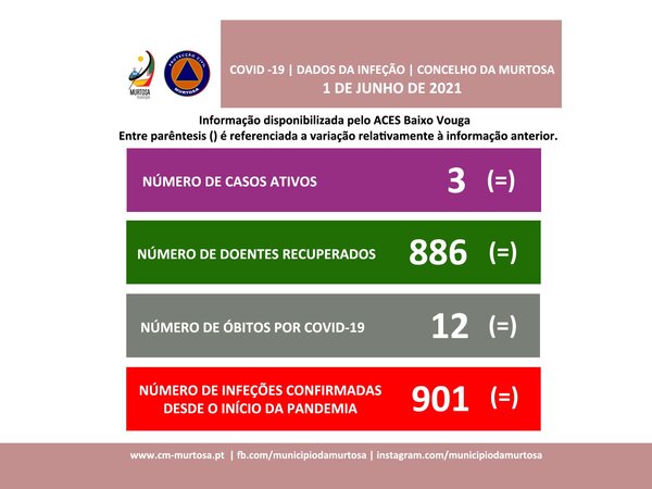INFORMAÇÃO À POPULAÇÃODados atualizados pelo ACES Baixo Vouga, 28/05/2021 | 17:26 Segundo os dados fornecidos pelo ACES Baixo Vouga, em atualização, existe, neste momento, 3 casos ativos de infeção por covid-19, mais três do que número registado no boletim anterior, datado de 25/05/2021. Estes ... -