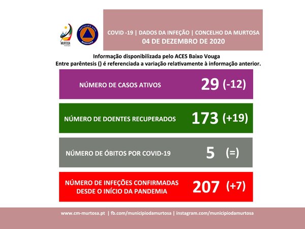 PROTEÇÃO CIVIL MUNICIPAL DA MURTOSAPANDEMIA DE COVID-19 – INFORMAÇÃO À POPULAÇÃODados atualizados pelo ACES Baixo Vouga, 04/12/2020 | 22H31 Segundo os dados fornecidos pelo ACES Baixo Vouga, em atualização, existem, neste momento, 29 casos ativos de infeção por covid-19, menos 12 do que os ... -