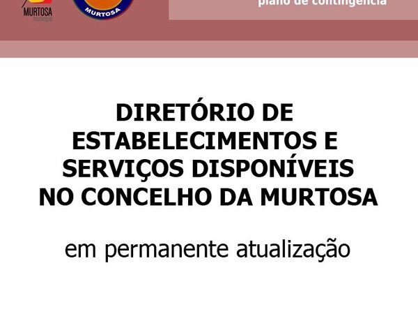 DIRETÓRIO DE ESTABELECIMENTOS E SERVIÇOS DISPONÍVEIS NO CONCELHO DA MURTOSA NO PERÍODO DE CONTINGÊNCIA O Município da Murtosa, em estreita colaboração com as Juntas de Freguesia está a compilar, em permanente atualização, a informação dos estabelecimentos comerciais e serviços em funcionamento ... -