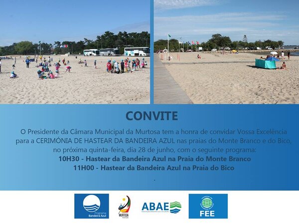 A praia do Monte Branco, na Torreira, e a praia do Bico, na Murtosa, hastearam formalmente, esta quinta-feira, dia 28 de junho, as bandeiras azuis atribuídas pela Associação Bandeira Azul da Europa, juntando-se assim à praia oceânica da Torreira que, no passado dia 1 de junho, acolheu a ...bandeira azul 2018bandeira azulpraia do bicopraia do monte branco -