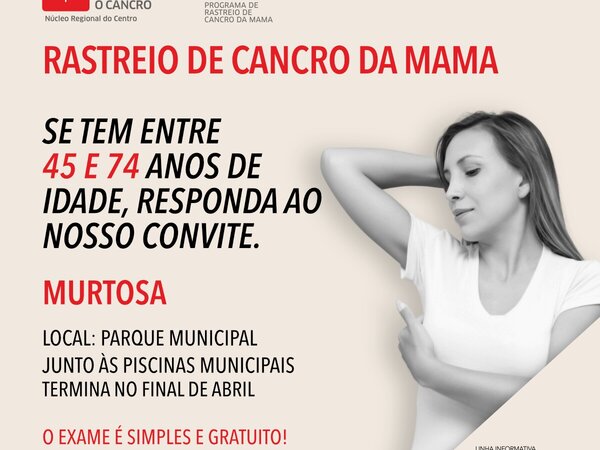O Núcleo Regional do Centro da Liga Portuguesa Contra o Cancro (LPCC), com a colaboração do Ministério da Saúde, encontra-se a promover a 13.ª volta do Programa de Rastreio de Cancro da Mama no Concelho da Murtosa. -