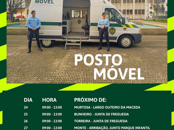 No sentido de gerar proximidade e confiança entre a Autoridade e os Cidadãos, o Comando Territorial de Aveiro da Guarda Nacional Republicana disponibiliza a presença de seu posto móvel em vários locais do concelho da Murtosa e da área de intervenção do posto territorial, durante esta semana.