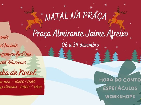 Árvore de Natal Gigante, Feirinha de Natal, Casa do Pai Natal, Oficina dos Duendes (Casa das Gerações), Teatro dos Sonhos (CRM - Oficina de Dança e Artes Criativas), insufláveis, pinturas faciais e momentos musicais, prometem animar a Praça Jaime Afreixo. -