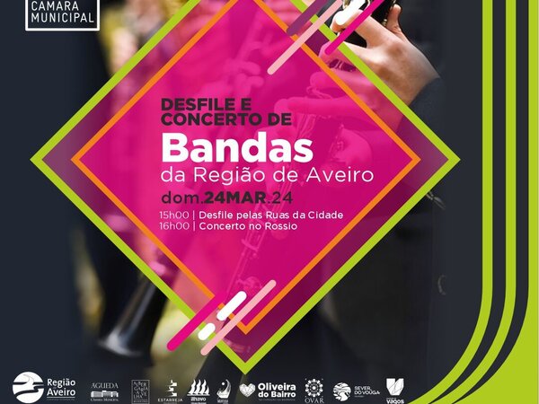 No âmbito da programação da “Aveiro 2024 Capital Portuguesa da Cultura”, a Cidade dos Canais será palco, no dia 24 de março, a partir das 14H30, o ”Desfile e Concerto de Bandas da Região de Aveiro”, que reunirá bandas filarmónicas dos concelhos integrantes da Comunidade Intermunicipal da Região ... -
