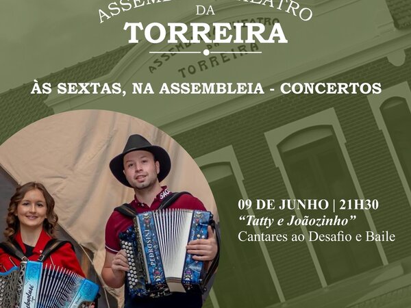 Em jeito de celebração dos Santos Populares, a dupla Tatty e Joãozinho vai animar, com música popular, a Assembleia Theatro da Torreira, na próxima sexta-feira, dia 9, pelas 21H30. -