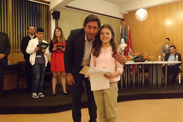 1.º lugar – Rosa de Fátima de Sousa Cirne, 12.º Ano, Escola dos 2.º e 3.º Ciclos do Ensino Básico c/ Secundário Padre António Morais da Fonseca (“O Mundo num Português”);