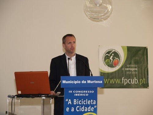 Seguiu-se o primeiro painel dos trabalhos, moderado pelo Professor Doutor Artur Rosa Pires, pró-reitor da Universidade de Aveiro, constituído pelo Eng. Januário Cunha, Vice-Presidente da Câmara Municipal da Murtosa, que apresentou o Projecto “Murtosa Ciclável”; pelo Dr. José Sá Fernandes, Vereador da Câmara de Lisboa, que mostrou o projecto “Lisboa Ciclável”, pelo Sr. Carlos Alonso, da associação “Asturia con Bici”, que falou acerca da promoção da bicicleta no Município de Oviedo, e pelo Professor Rogério Gomes, Presidente da Rede Portuguesa para o Desenvolvimento do Território – Instituto do Território, que focou algumas das questões essenciais da relação entre a bicicleta e o ordenamento do território.
