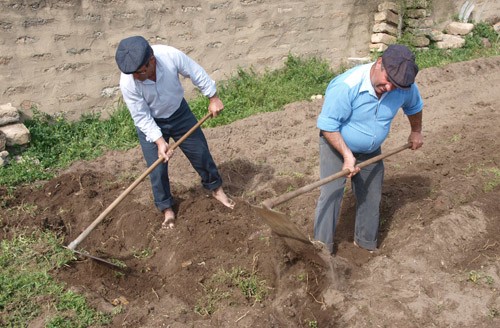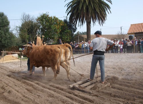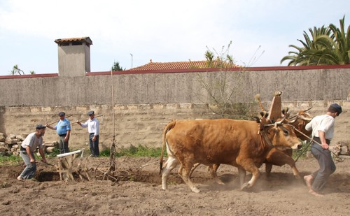 Depois de devidamente preparado, o terreno começou por ser lavrado, com uma charrua, puxada por uma junta de vacas de raça marinhoa, também conhecida por “gado vermelho, autóctone da região, caracterizado pela sua força e mansidão, que auxiliava nos trabalhos agrícolas de outrora. Ao mesmo tempo, os cabeceiros, onde a charrua não chegou, foram cavados, enquanto que um grupo de mulheres encinhou o terreno, retirando os restos de ervas.