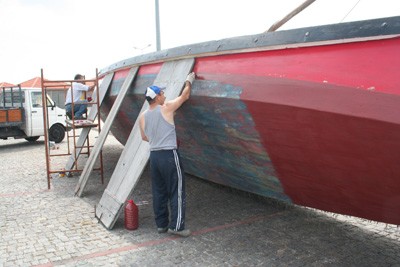 A embarcação está a ser alvo de trabalhos de limpeza e pintura, tendo para o efeito sido retirada da água e transportada para seco, na zona do Porto de Abrigo.