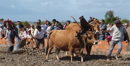 As tarefas de preparação e cultivo do terreno (lavrar, gradar e semear) foram feitas à semelhança daquilo que era habitual nas décadas de 50, 60 e 70 do século passado, com alfaias agrícolas, gado, sementes e métodos de trabalho, similares ao da época, incluindo o modo de vestir dos intervenientes. O trabalho foi executado, da forma tradicional, por um conjunto de pessoas, coordenadas pelo Sr. José Fonseca, do lugar do Esteiro, da Freguesia do Bunheiro, um aficionado do gado marinhão que se predispôs, a convite das colectividades organizadoras, a dar corpo à iniciativa. Os espectadores tiveram oportunidade de escutar, ao longo da recriação, algumas notas explicativas que contextualizaram cada um dos momentos.
