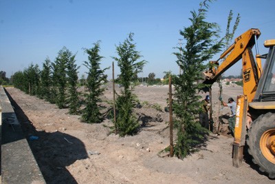 Neste âmbito, por forma a criar um elemento visual que permita, de modo harmonioso, a integração paisagística da área dos futuros armazéns com o cemitério existente, a Câmara Municipal procedeu à plantação, ao longo do muro de vedação, do lado do terreno Municipal, de um total de 73 árvores das espécies cupressus leyland (cipreste de leyland) e populus nigra (choupo).