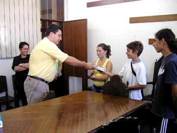 Os felizes contemplados receberam das mãos do Vereador Januário Cunha, em cerimónia realizada nos Paços do Concelho, as 6 máquinas fotográficas digitais e 1 PDA, sorteados na reunião da Câmara Municipal do passado dia 25 de Julho.