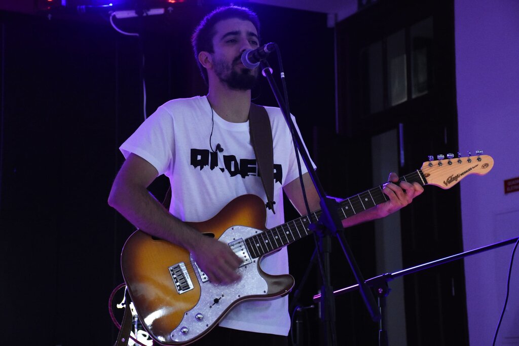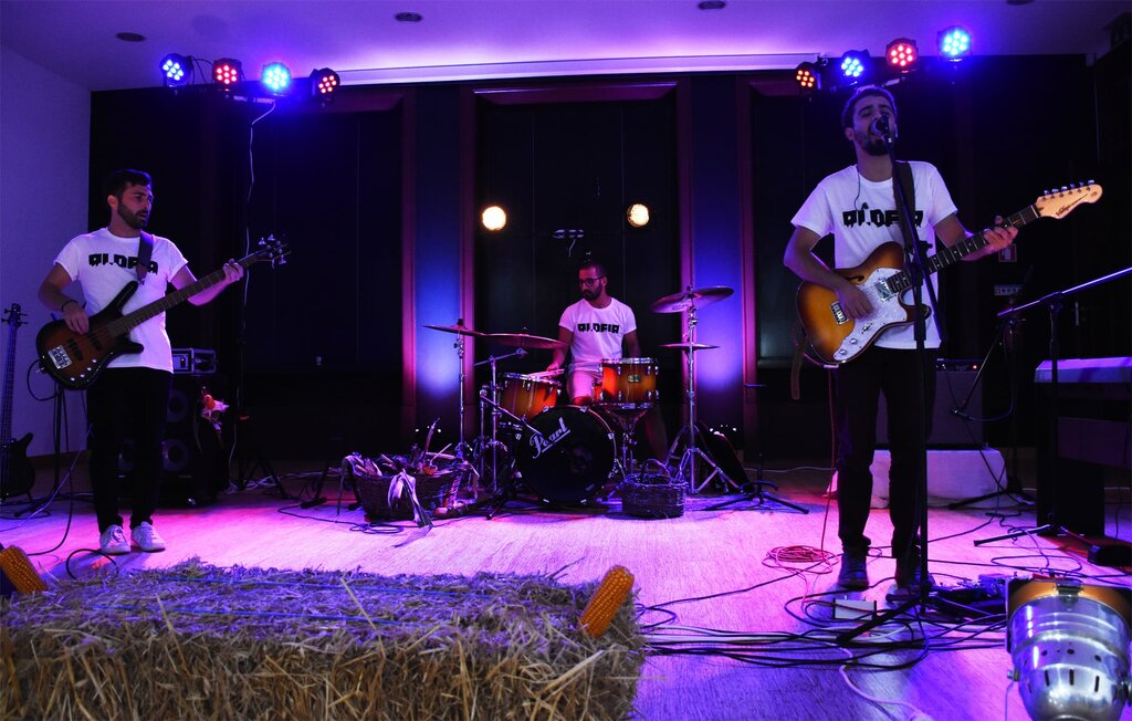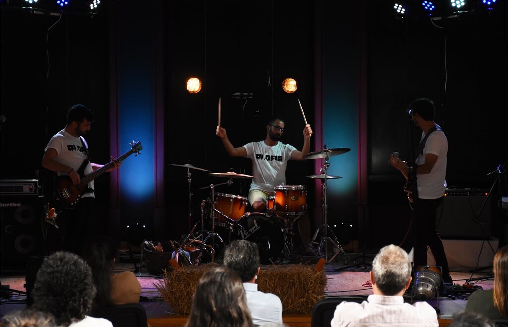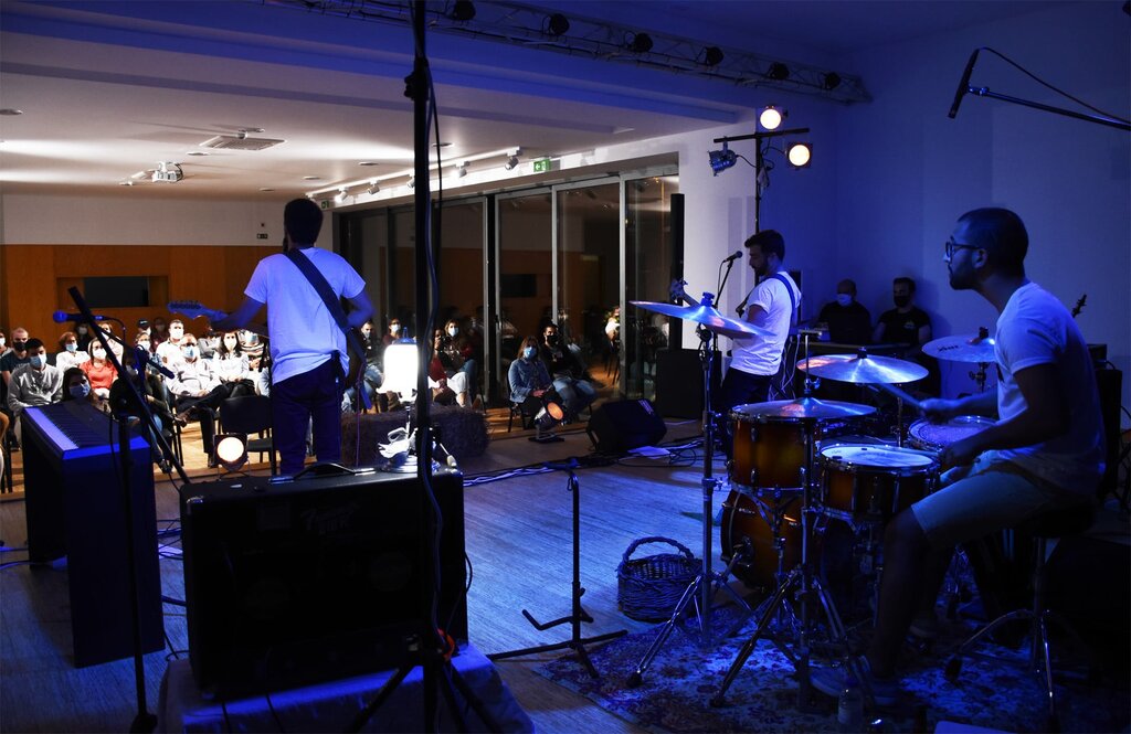 Balcão OnlineO auditório da Oficina de Artes recebeu, esta quinta-feira, dia 24 de setembro, a primeira apresentação pública do coletivo Murtoseiro Aldeia, constituído por Pedro Silva na bateria, Litos no baixo e Fábio Ferreira na voz, guitarra e piano.