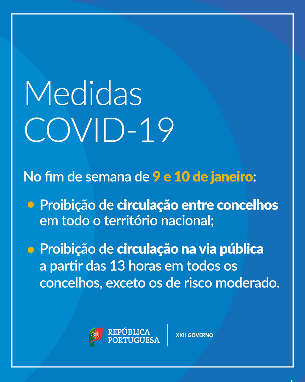 Balcão OnlineNo âmbito da renovação do Estado de Emergência, o Governo determinou, para o próximo fim de semana de 9 e 10 de janeiro: