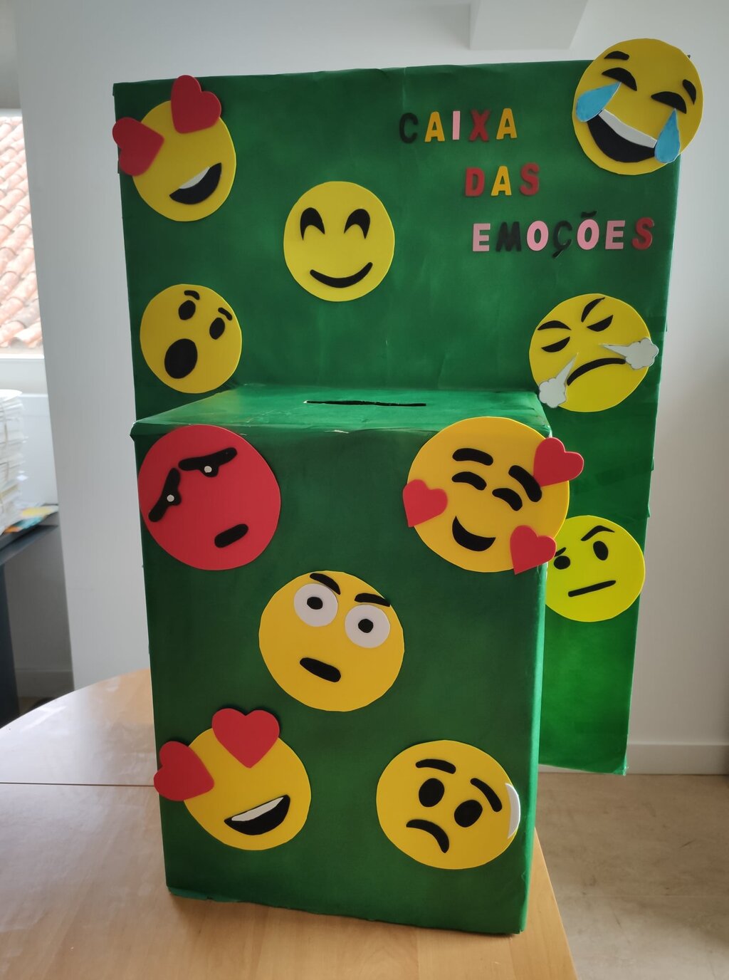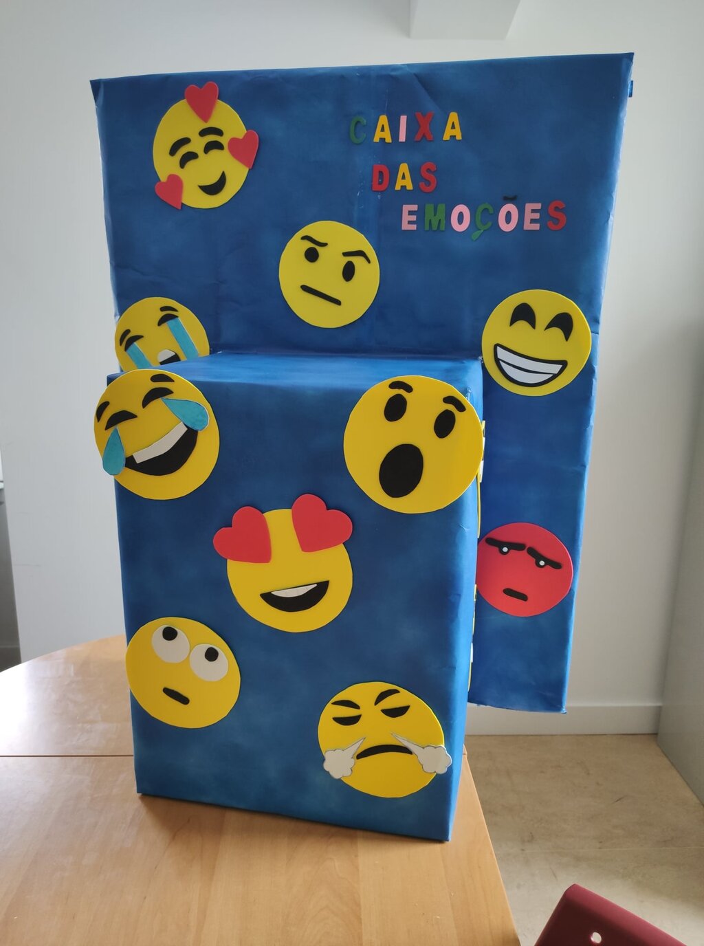 A atividade “Caixa das Emoções” começa com a visualização de pequenos filmes temáticos que serão alvo de uma reflexão em cada uma das turmas, sendo os alunos, depois, convidados a exprimir, de forma escrita ou desenhada, uma emoção individual sentida. Cada uma destas expressões será colocada, pelos alunos, numa caixa devidamente identificada no espaço escolar (PAMF e EBI1 da Torreira), à qual se deu o nome de: Caixa das Emoções.