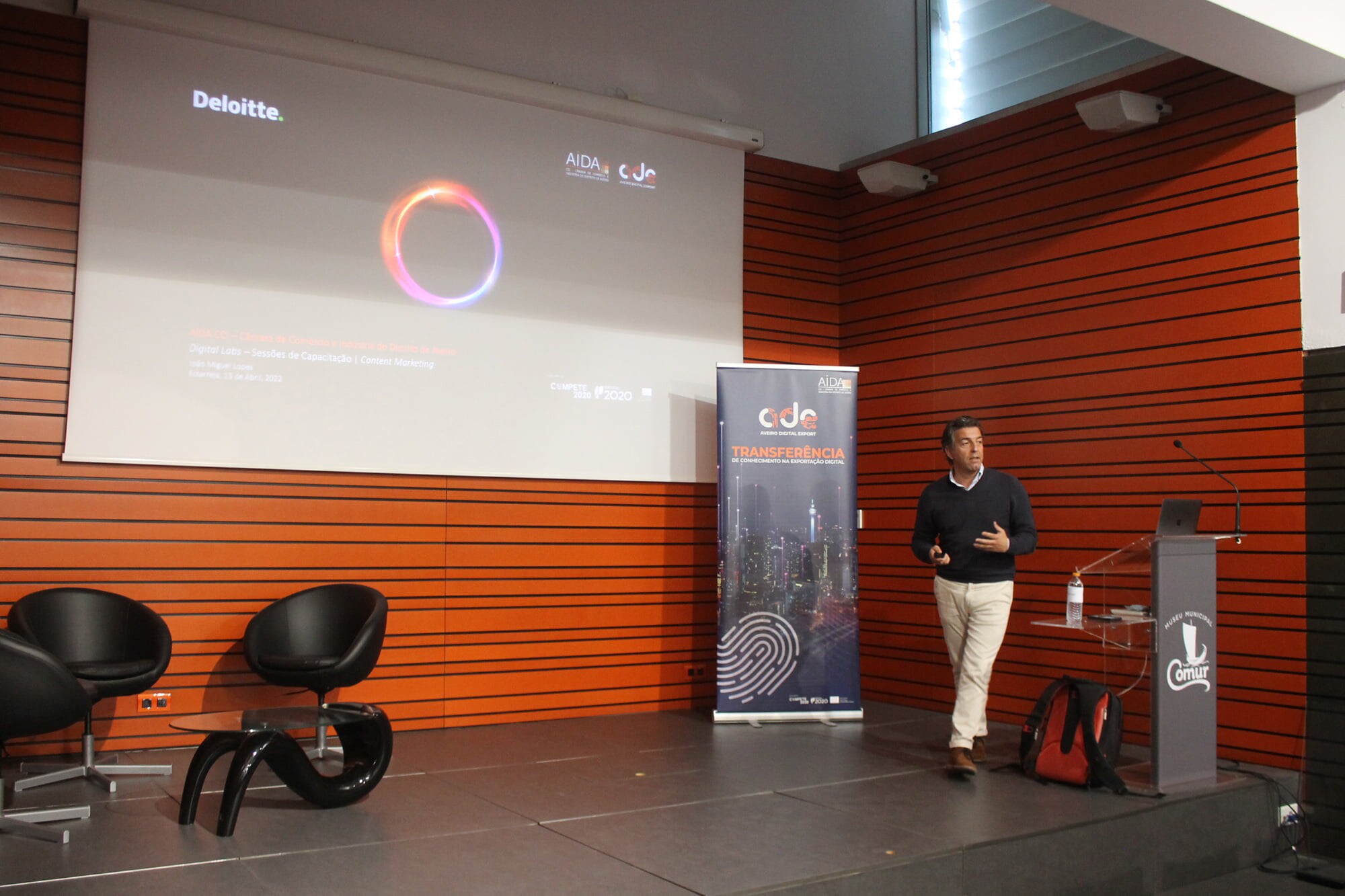 Balcão OnlineA COMUR – Museu Municipal recebeu, na passada quarta-feira, dia 13 de abril, uma sessão sobre "Content Marketing", dinamizada pelo Professor João Miguel Lopes, realizada no âmbito do Projeto Aveiro Digital Export, criado pela AIDA CCI (Câmara de Comércio e Indústria) para reforçar as competências exportadoras e digitais das empresas do Distrito de Aveiro.