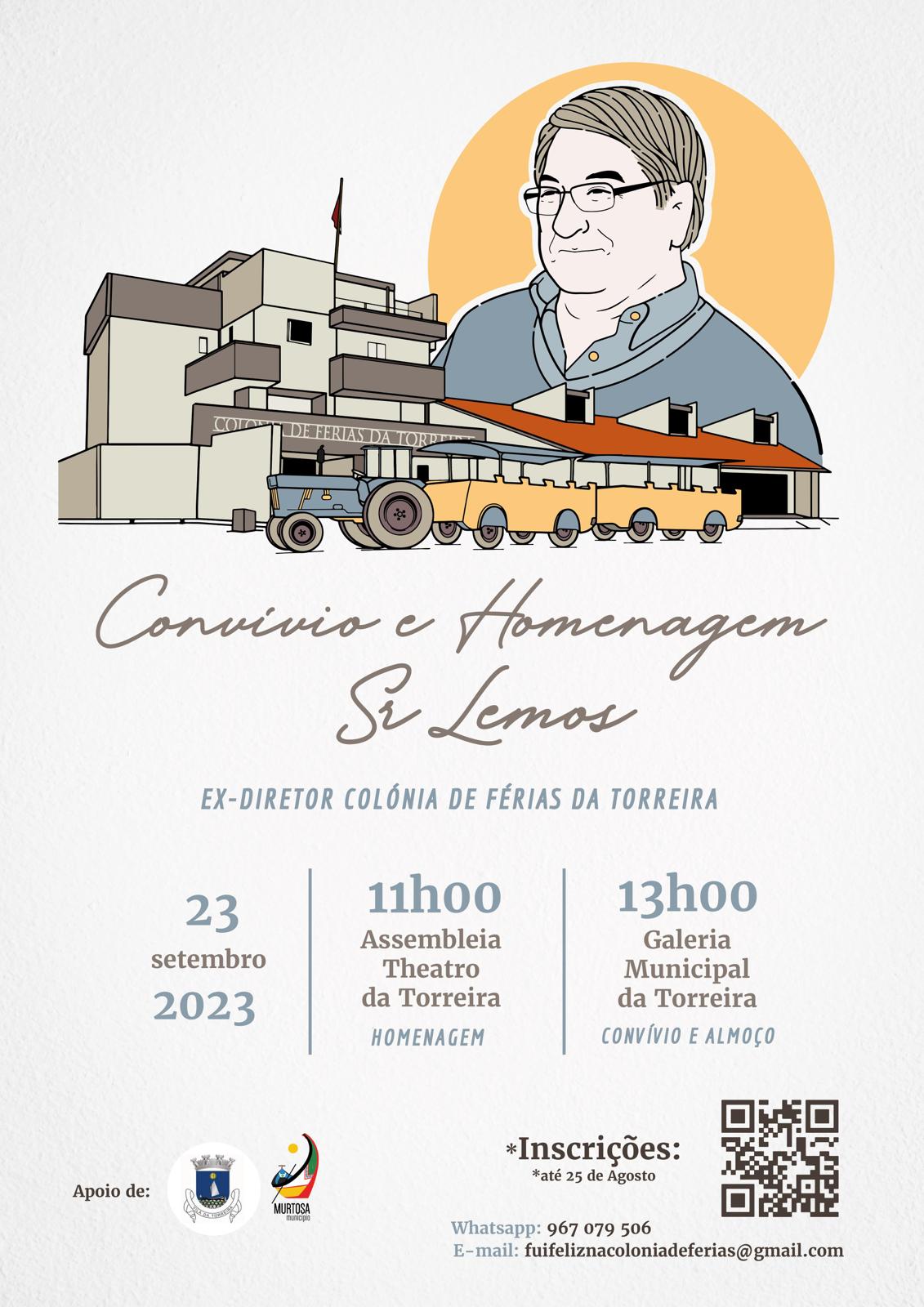 Balcão OnlineNo ano que o Sr. Lemos, antigo diretor da Colónia de Férias da Torreira, comemora 80 anos de vida, ser-lhe-á prestada uma devida homenagem, promovida por um grupo de amigos, com o apoio do Município da Murtosa e da Junta de Freguesia da Torreira, que constituirá, igualmente, um desejado reencontro de pessoas que passaram por aquele espaço e foram/fizeram pessoas felizes.