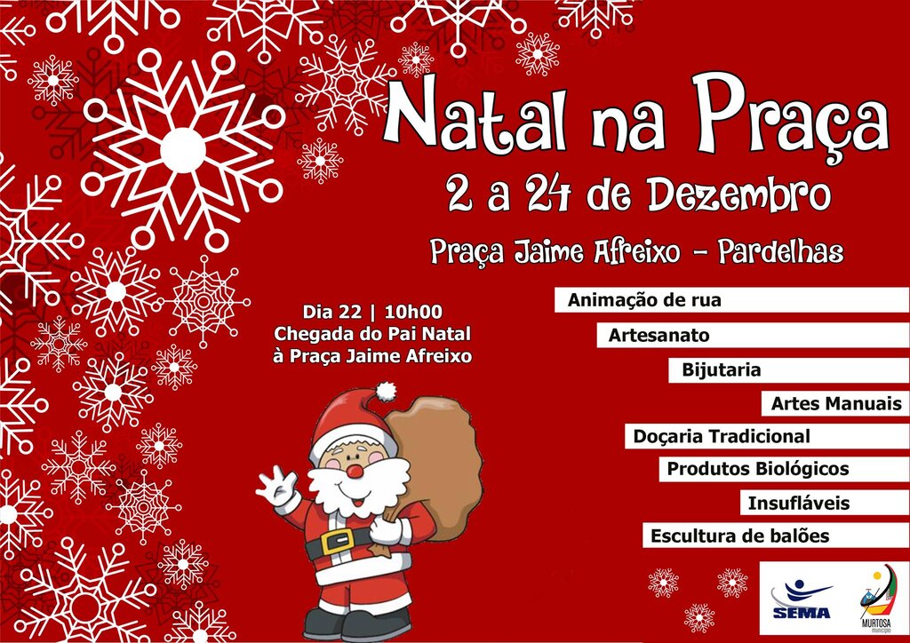 Balcão OnlinePelo terceiro ano consecutivo, a Câmara Municipal da Murtosa, com o apoio da SEMA – Associação Empresarial, levará a cabo a iniciativa “Natal na Praça” que decorrerá de 2 a 24 de dezembro, na Praça Jaime Afreixo, em Pardelhas.