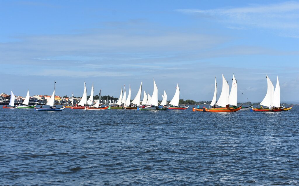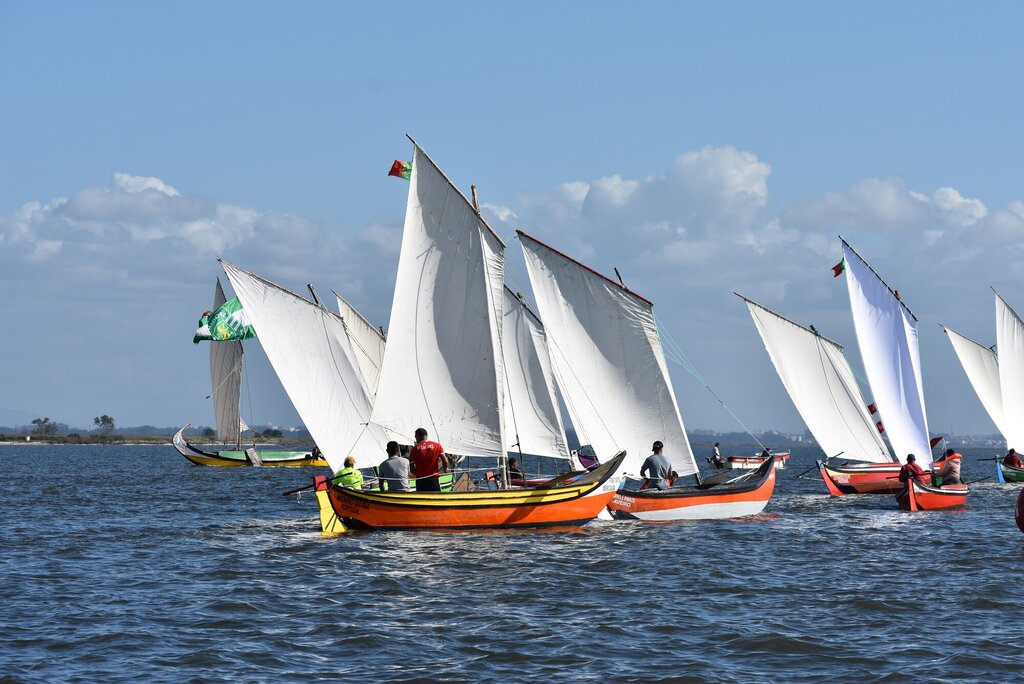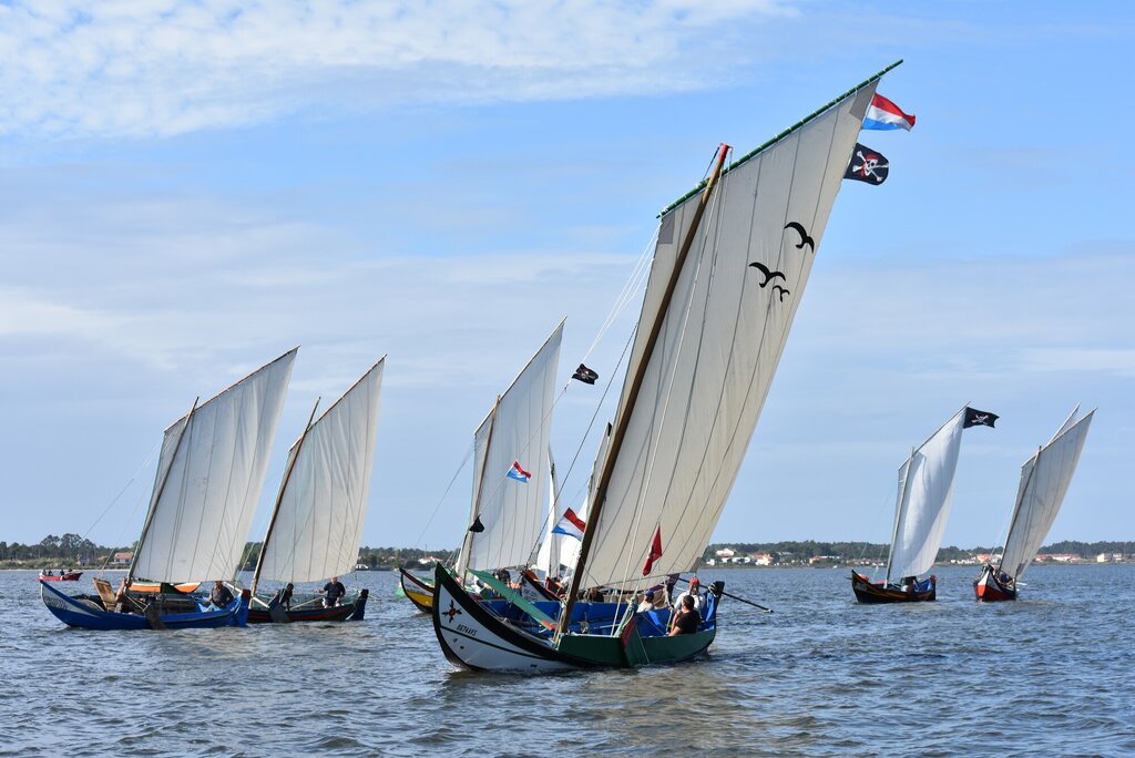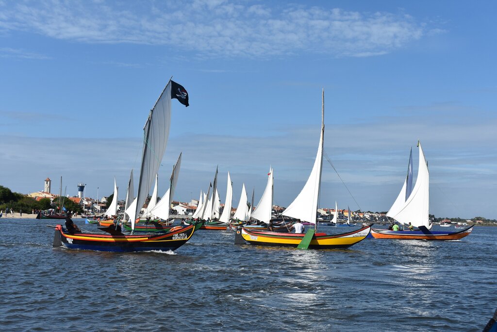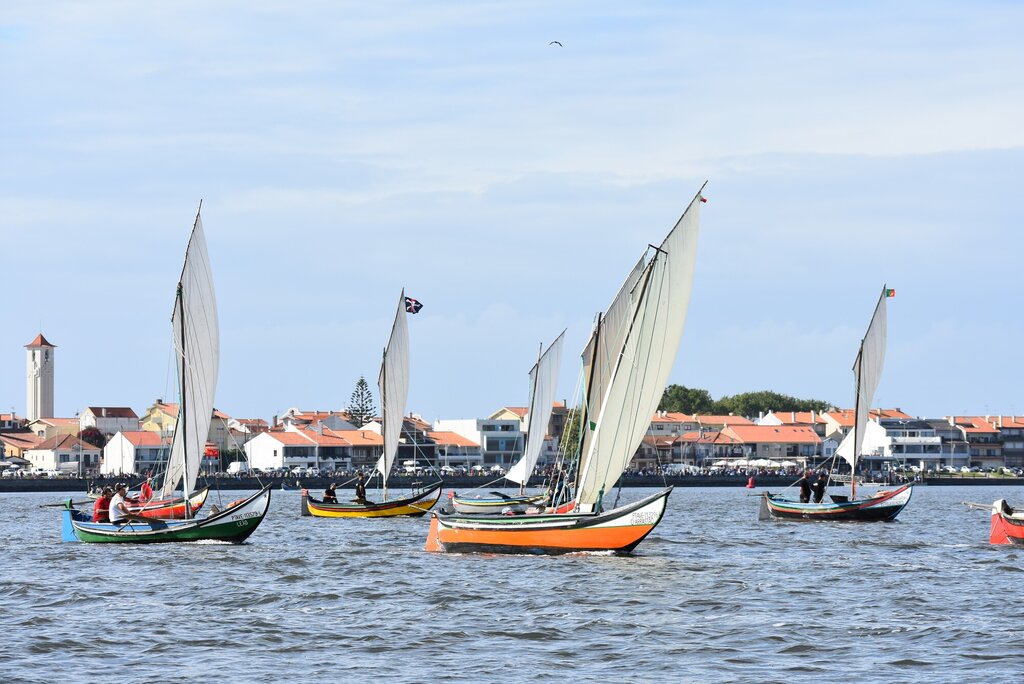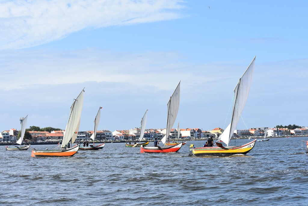 As corridas de embarcações tradicionais são um dos elementos distintivos da Romaria de São Paio da Torreira, mostrando a profunda ligação entre a festa e a laguna.