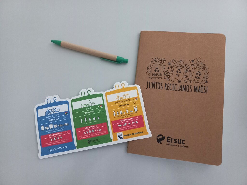 No final, a ERSUC ofereceu a cada um dos alunos, na forma de “Trabalho Para Casa”, um íman com algumas das principais regras a respeitar na reciclagem doméstica e ainda um caderno e uma caneta, com o slogan: JUNTOS RECICLAMOS MAIS!