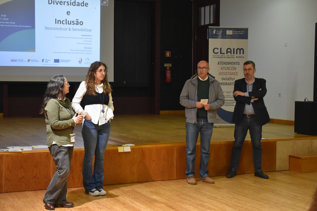 Balcão OnlineO auditório interior da Oficina de Artes recebeu, no passado dia 20 de novembro, o workshop “Diversidade e Inclusão, desconstruir & sensibilizar”, organizado pelo CLAIM - Centro Local de Apoio à Integração de Migrantes de Aveiro, em parceria com o Secretariado Diocesano da Pastoral Sócio Caritativa, da Diocese de Aveiro, e com o Município da Murtosa.