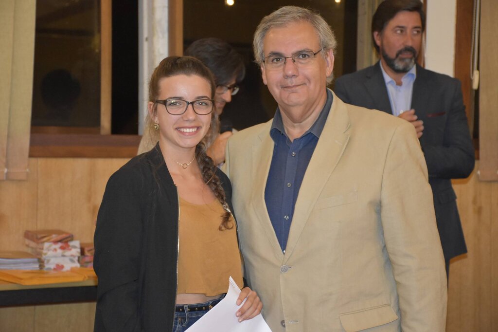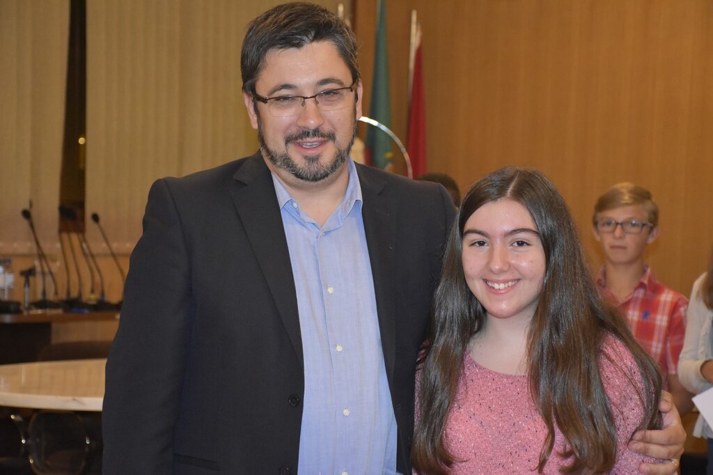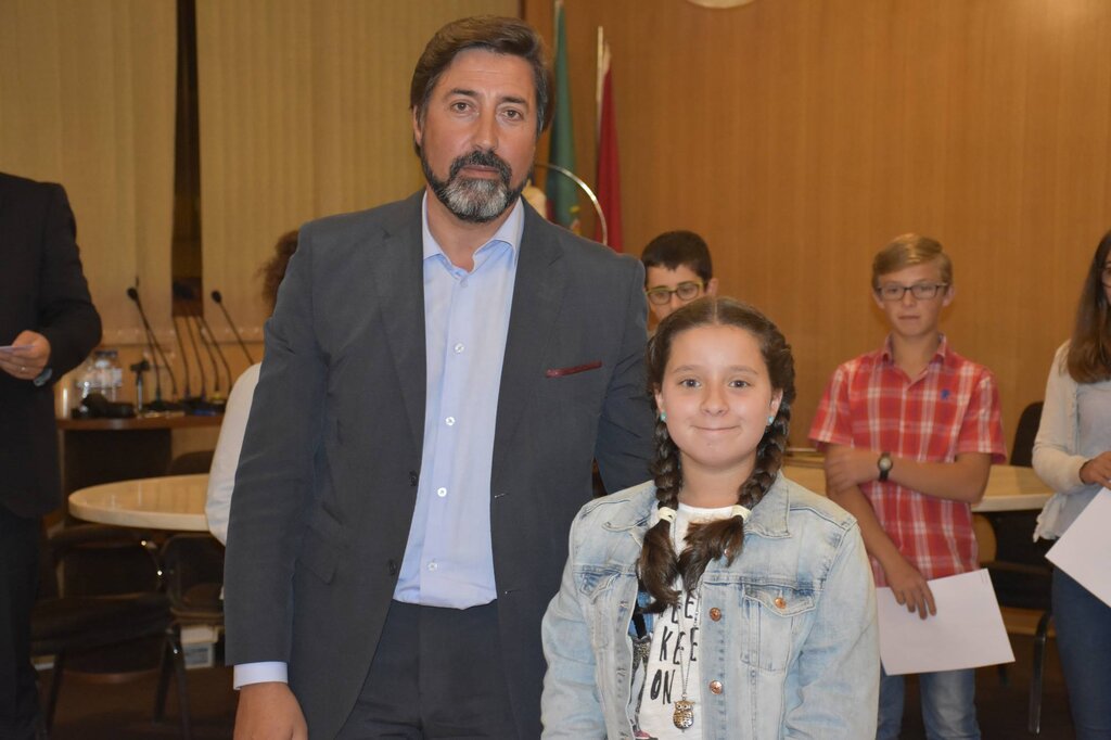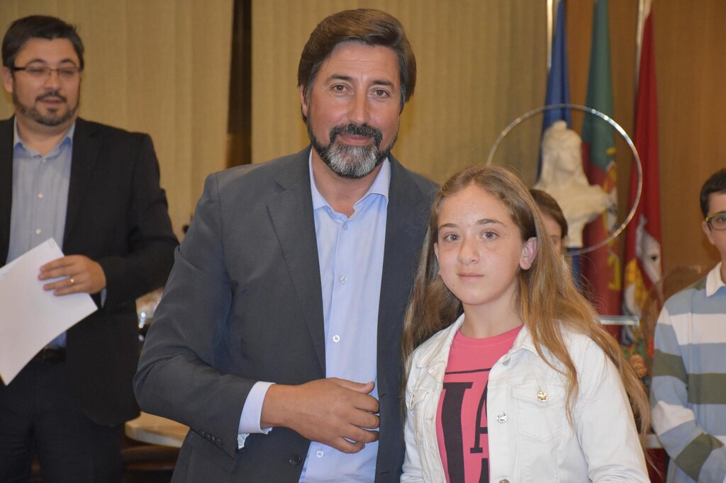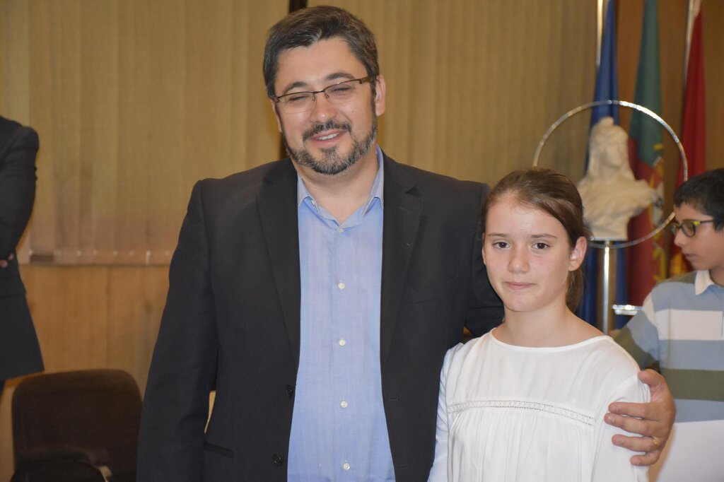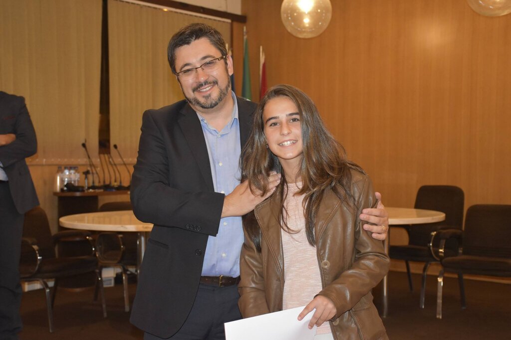 De seguida, o Presidente da Câmara, o Diretor do Agrupamento e o Vice-Presidente da Câmara, Eng. Januário Cunha, coadjuvados pelo Sub-Diretor do Agrupamento, Professor Vítor Martins, procederam à entrega dos prémios de “Aluno de Mérito – Boa Conduta” e de “Aluno de Mérito – Bom Aluno”, bem como dos diplomas a alguns dos alunos finalistas do 12º ano.