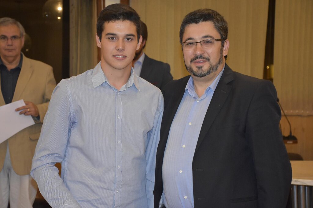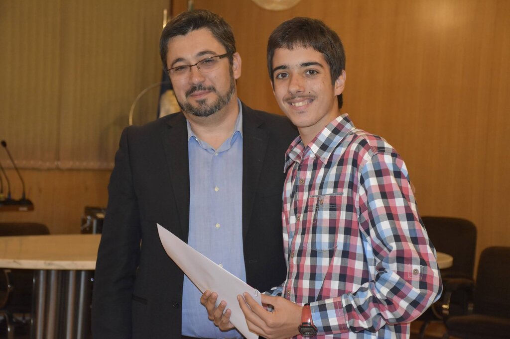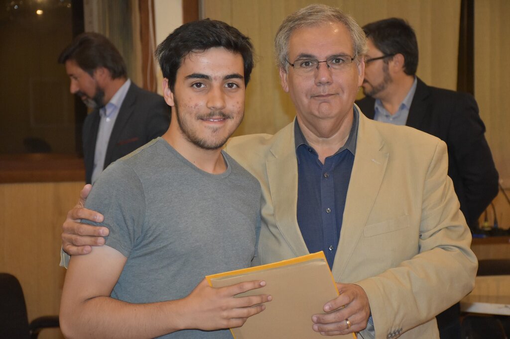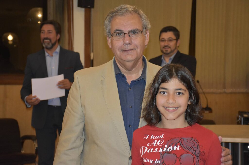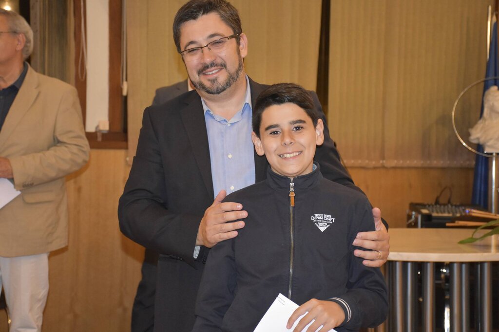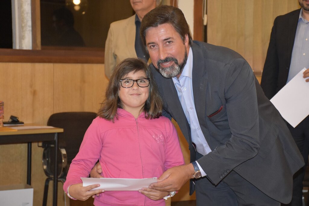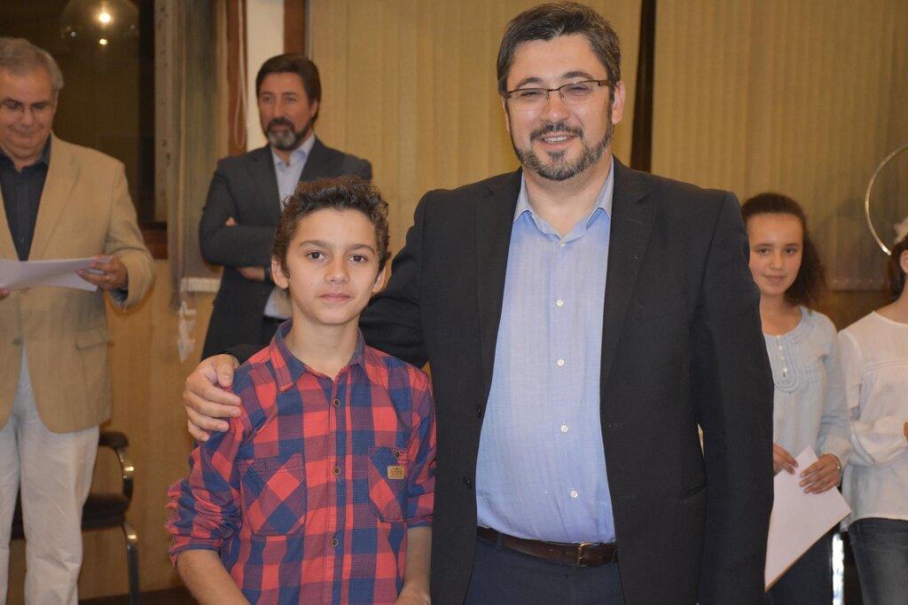 De seguida, o Presidente da Câmara, o Diretor do Agrupamento e o Vice-Presidente da Câmara, Eng. Januário Cunha, coadjuvados pelo Sub-Diretor do Agrupamento, Professor Vítor Martins, procederam à entrega dos prémios de “Aluno de Mérito – Boa Conduta” e de “Aluno de Mérito – Bom Aluno”, bem como dos diplomas a alguns dos alunos finalistas do 12º ano.