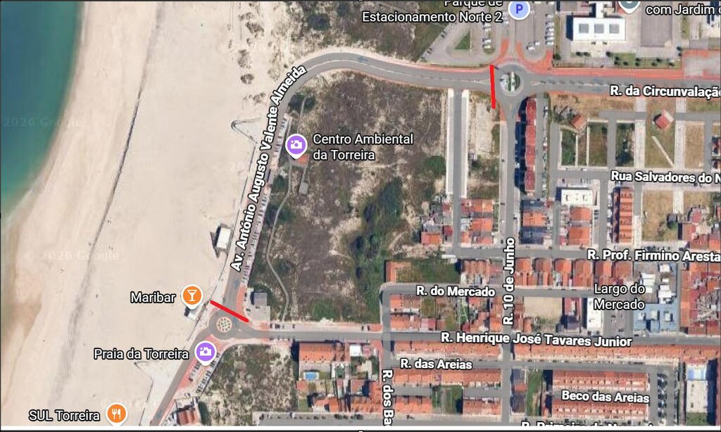 Esta interdição deve-se aos trabalhos de remoção de areias acumuladas na via e estacionamentos, provocadas pelo vento.