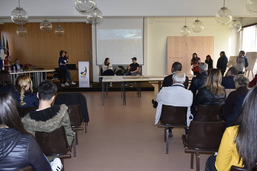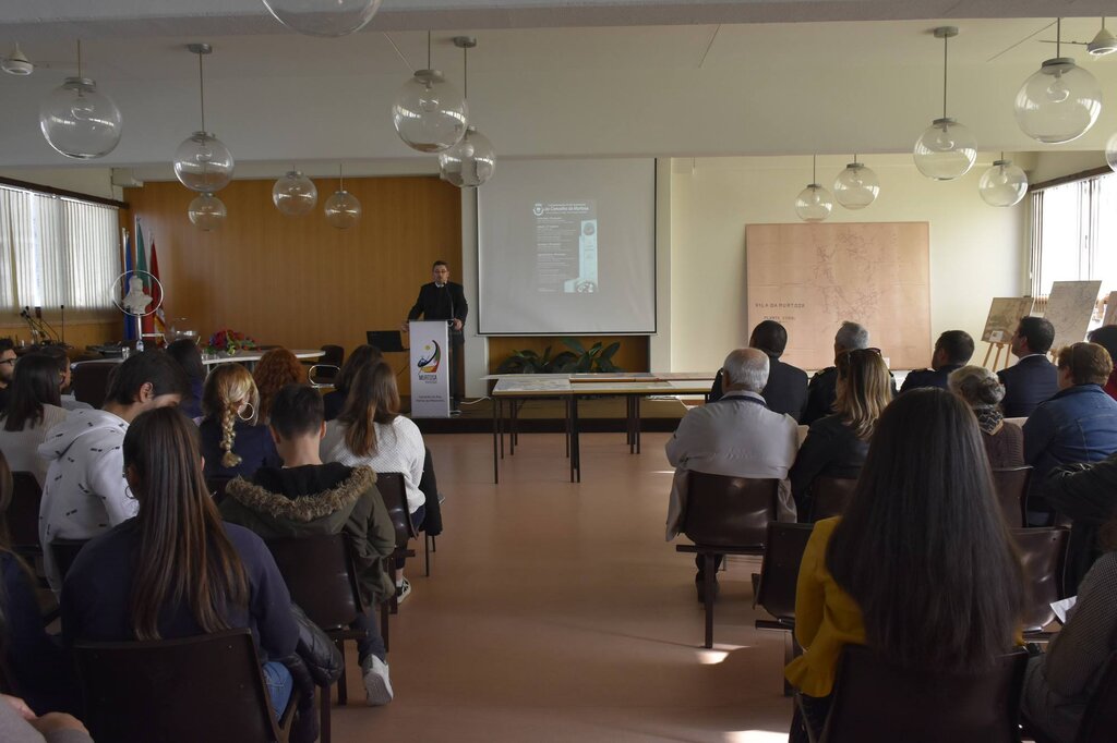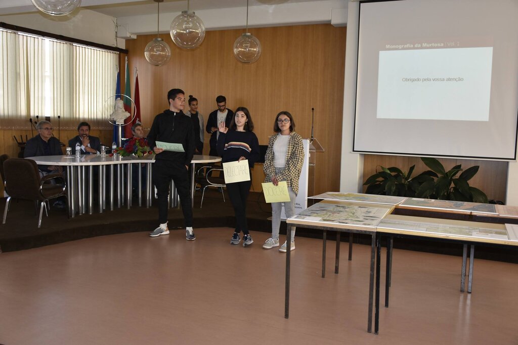 A sessão terminou com um conjunto de três apresentações, preparadas pelos alunos do secundário da Escola Padre António Morais da Fonseca, que, em elevado número, se associaram ao programa comemorativo.