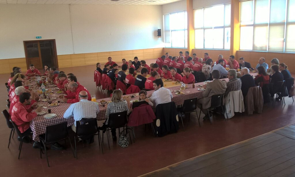 O salão dos Bombeiros recebeu, igualmente, um almoço convívio, que juntou o Presidente da Câmara, os Dirigentes da Associação Humanitária dos Bombeiros Voluntários da Murtosa, o Corpo Ativo dos Bombeiros e os Infantes e Cadetes.
