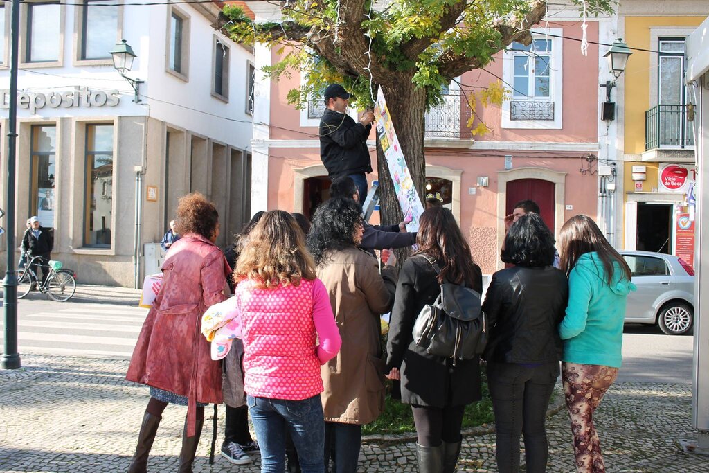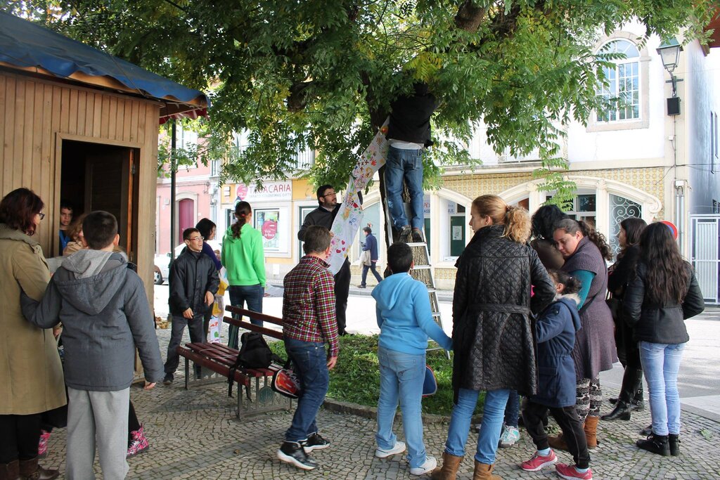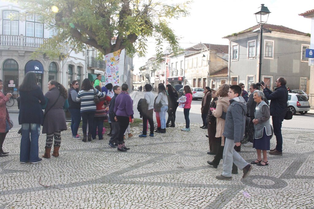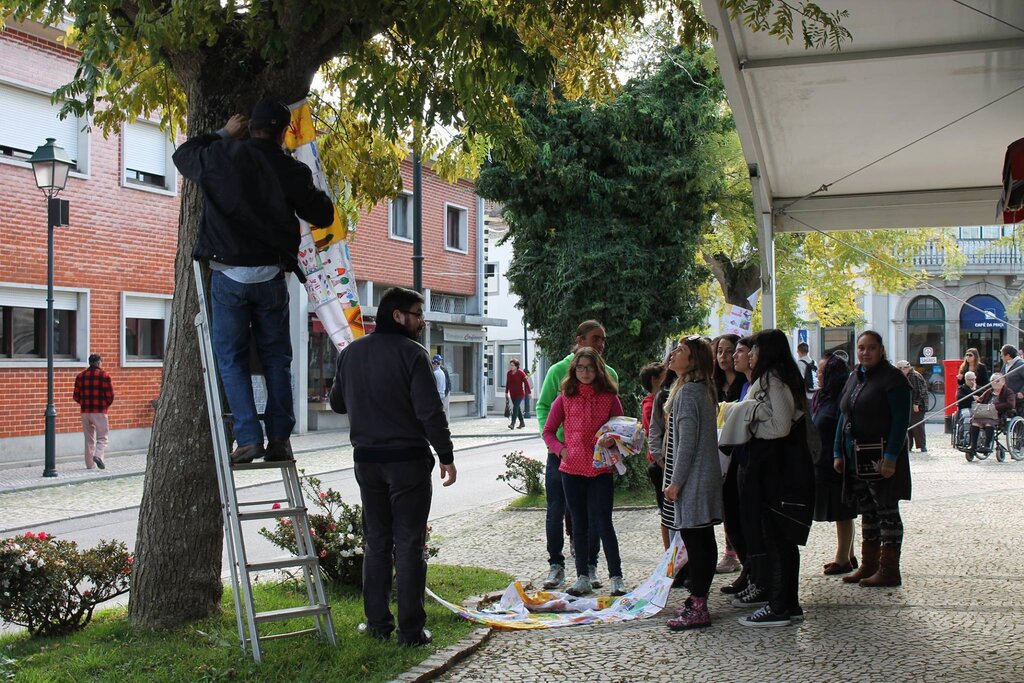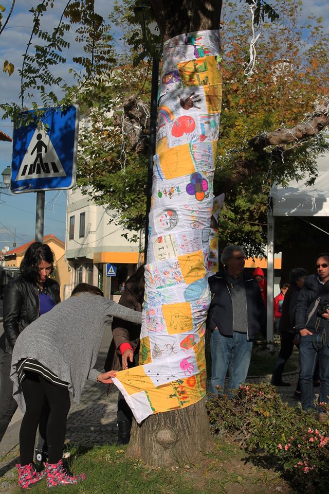 Estes quadrados, depois de “ilustrados”, foram entregues à organização, para que as equipas de trabalho os pudessem costurar, formando grandes tiras de de tecido, com a junção dos contributos individuais de cada cidadão.
