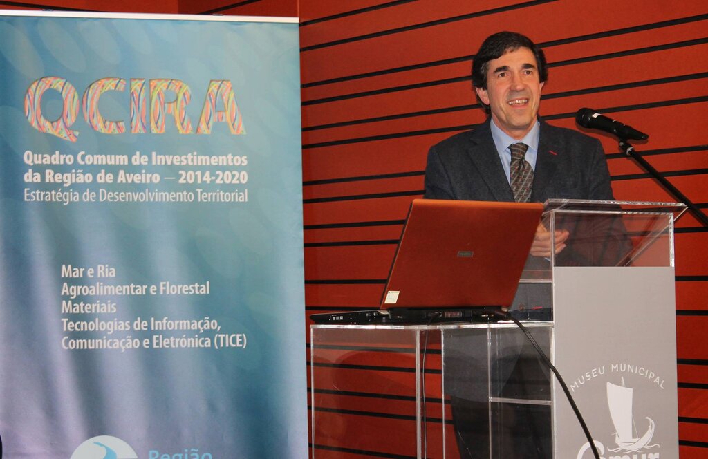 Falou, depois, o Professor Filipe Teles, Pró-Reitor da Universidade de Aveiro, que apresentou a estratégia de desenvolvimento regional, um documento estratégico que define quatro áreas de especialização inteligente – Ria de Aveiro e Mar; área Agroalimentar e Florestal; área dos Materiais e as Tecnologias de Informação, Comunicação e Eletrónica. Tendo em conta estas áreas, serão desenvolvidas ações que visam as seguintes metas estratégicas – promoção de um contexto de suporte à inovação e ao empreendedorismo; proteção e valorização dos recursos naturais da Região; reforço e capacitação das comunidades de forma inclusiva; aposta no território como identidade, recurso e marca diferenciadora; e qualificação da governação e da prestação de serviços públicos.