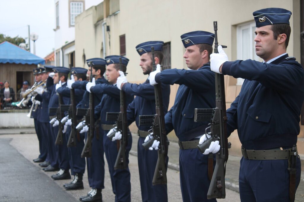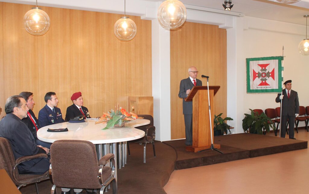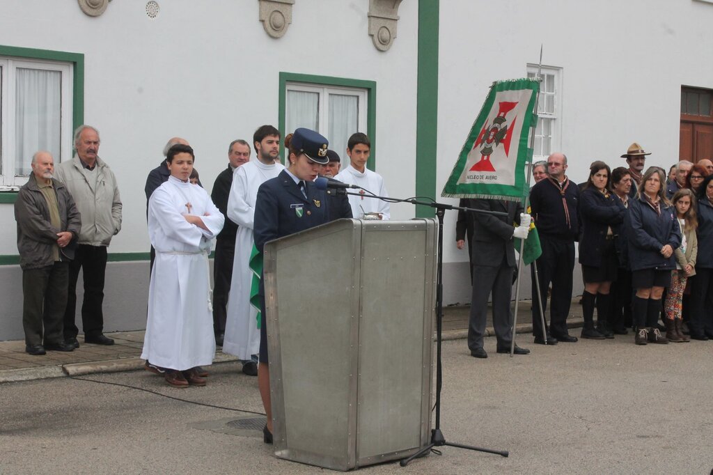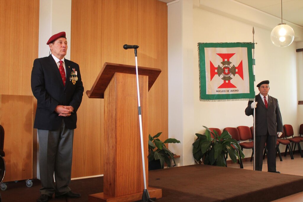 A cerimónia, com honras militares, prestadas por uma força do Aeródromo de Manobras nº 1 de Maceda, iniciou-se com a deposição, de um coroa de flores junto ao monumento, por parte do Presidente da Câmara Municipal, Eng. Joaquim Baptista, do Presidente do Núcleo de Aveiro da Liga dos Combatentes, Major João Carvalho, e do Major da Força Aérea, Rocha Ferreira, do AM1 de Maceda.