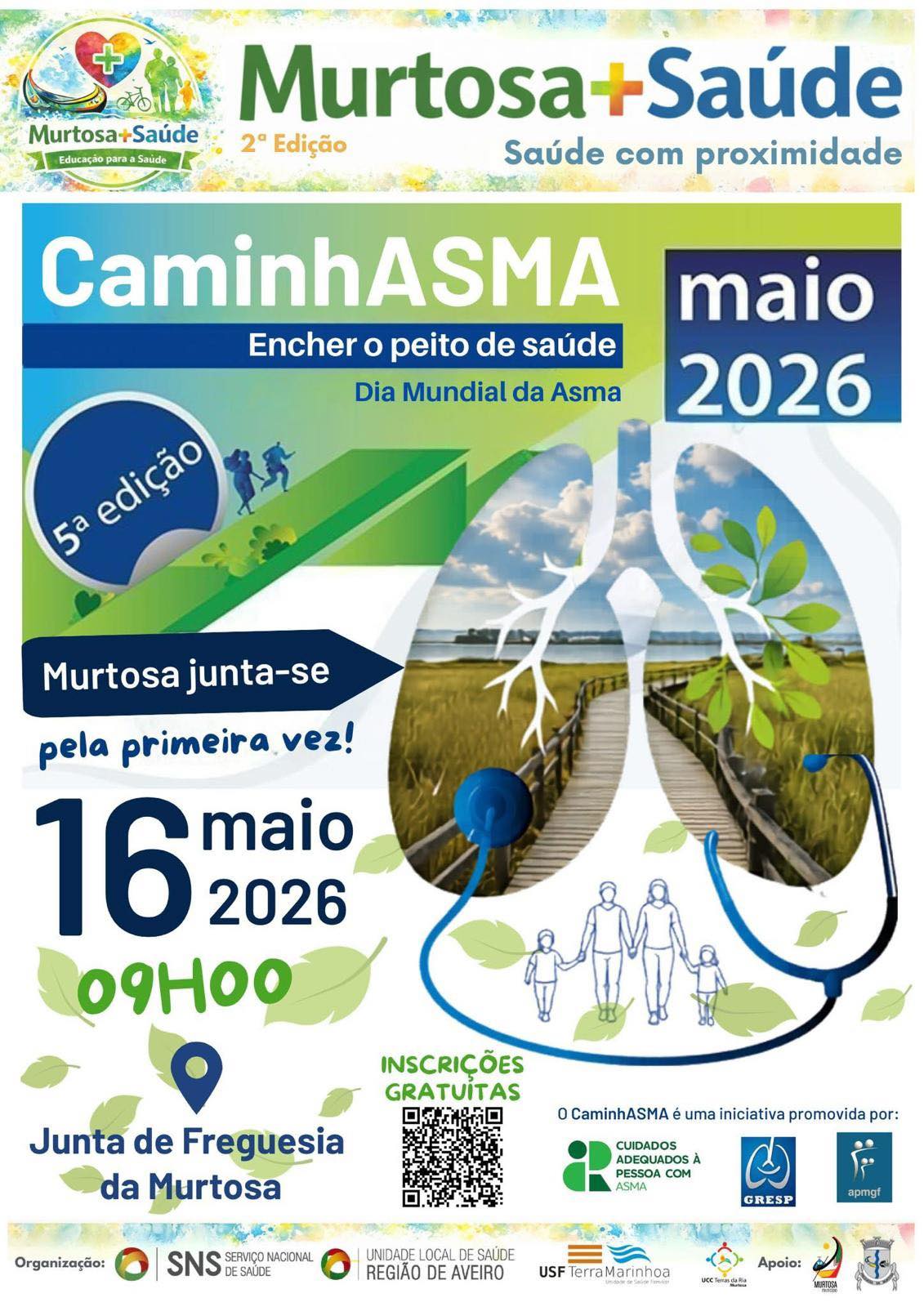 Balcão OnlineO projeto Murtosa+Saúde, iniciativa da USF Terra Marinhoa e da UCC Terras da Ria Murtosa, associa-se ao movimento CAPA (Cuidados Adequados à Pessoa com Asma) e traz pela primeira vez o CaminhASMA até à Murtosa.