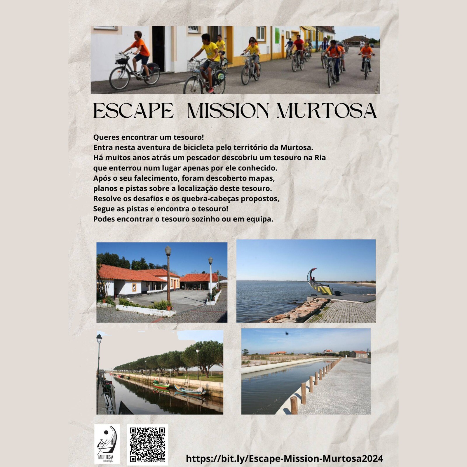 Ainda no âmbito do festival, de 28 de junho a 7 de julho, estará ativo o desafio “Murtosa Escape Mission”, que incentiva à descoberta do território, de bicicleta, numa verdadeira caça ao tesouro, com muitas pistas e enigmas.