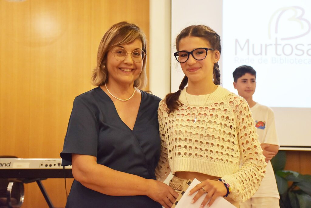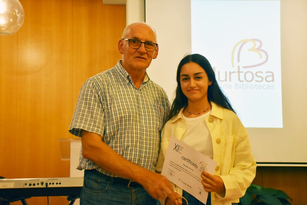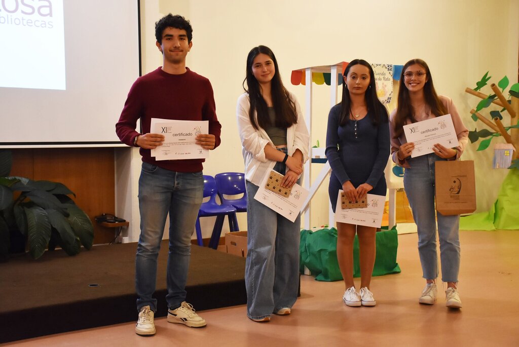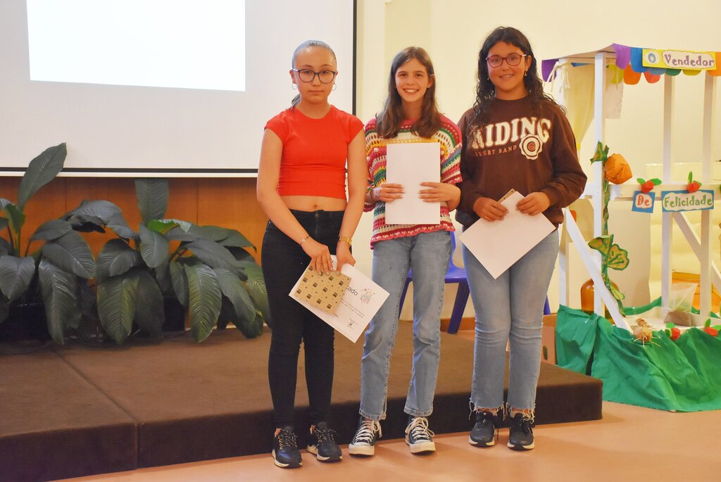 Teve lugar, depois, a entrega dos prémios aos autores dos trabalhos distinguidos nos 4 escalões a concurso, nas modalidades de prosa e poesia, intercalada com interpretações musicais das alunas Mariana Marques (saxofone alto) e Matilde Bessa (violoncelo) e de um momento de teatro trazido pelos alunos da turma B4 da Professora Paula Gonçalves, do Centro Escolar da Saldida, que apresentaram uma adaptação, feita pela Professora Manuela Sousa, do livro “O Vendedor de Felicidade”, de Davide Calì e Marco Somà.
